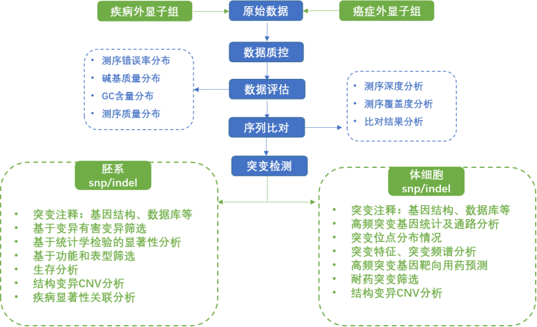 全外显子组测序(whole exome sequencing ,WES)是利用探针杂交富集外显子区域的DNA序列,通过高通量测序技术进行外显子组测序,能够直接发现与蛋白质功能变异相关的遗传突变。目前,外显子组测序技术已经应用到寻找与各种复杂疾病相关的致病基因和易感基因的研究中,对找到疾病的有效预防和治疗策略有重要的意义。同时外显子测序也应用在癌症、正常人群和遗传性疾病的研究中。