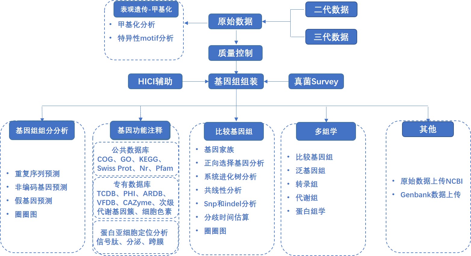 真菌基因组测序,即利用高通量、高深度的测序手段,通过对高质量测序数据进行de novo组装,从而获得真菌基因组的序列、编码和变异等信息。真菌基因组测序还可以应用在系统进化、溯源分析和物种鉴定等分析。
