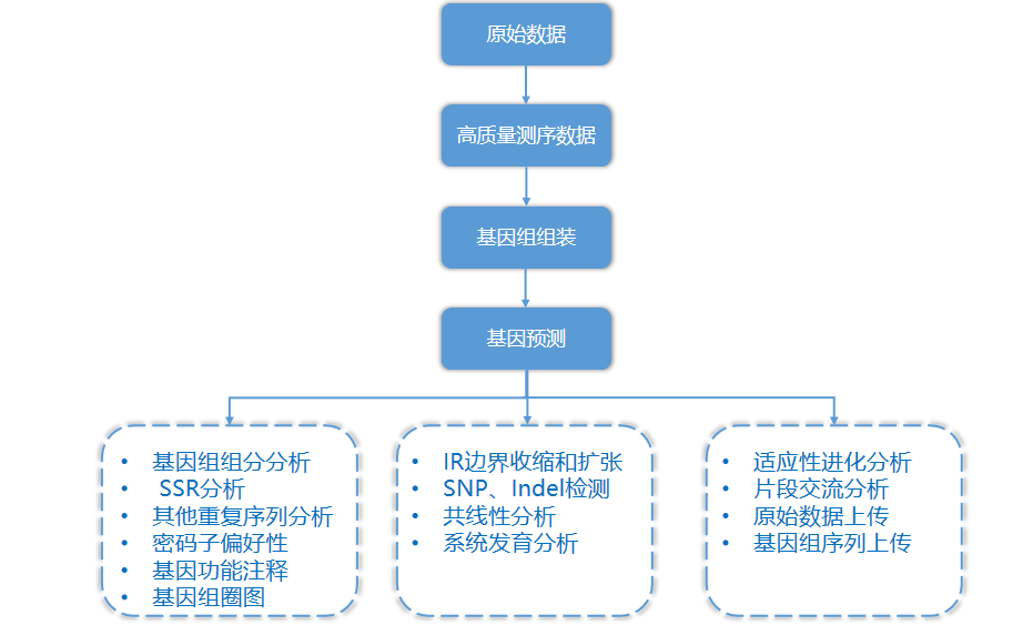 细胞器基因组de novo测序(线粒体和叶绿体)是通过高通量测序技术,获得高质量细胞器基因组信息。细胞器基因组具有高保守性、较低突变率、母系遗传的特性,能够为系统发育、物种鉴定以及生物多样性、群体遗传生物保护等多方面研究提供有价值的信息。