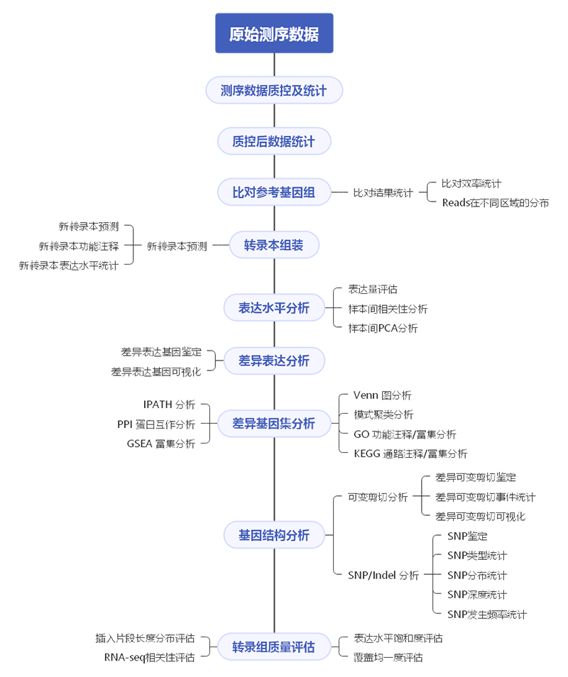 有参真核RNA-seq是对真核生物特定组织或细胞在某个特定状态下转录的所有含有poly A尾的mRNA和部分lncRNA, 使用oligo dT进行富集。 然后对富集下来的mRNA/lncRNA进行测序进而对测序结果进行生物信息学分析,在有参考基因组比对的基础上,从而获得RNA中的基因表达、 可变剪接、 RNA编辑等信息。