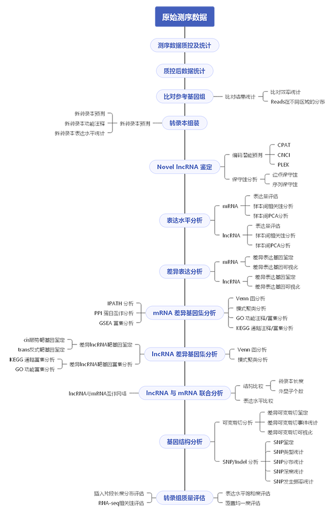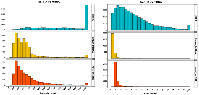 上述处理之后的RNA中,除了lncRNA外,还包含全部的pre-mRNA, mRNA和部分circular RNA。测序采用Illumina测序平台进行测序,针对有参考基因组样本开展准确的lncRNA鉴定和lncRNA靶基因预测,同时提供针对测序数据中mRNA的表达分析和差异分析。