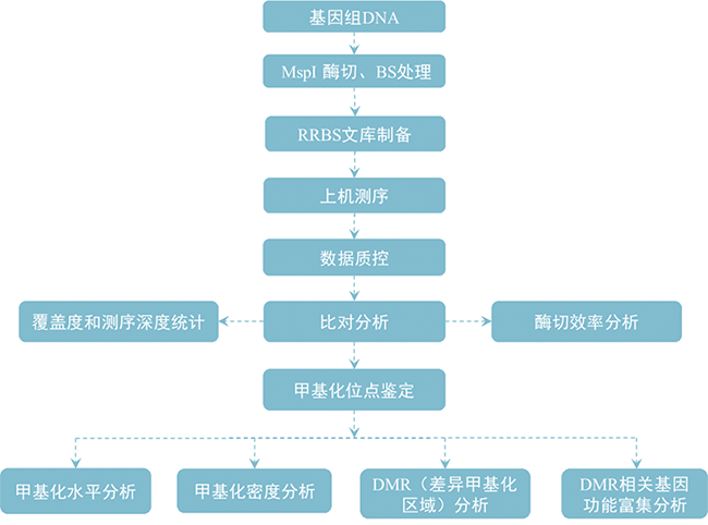 简化甲基化测序(Reduced Representation Bisulfite Sequencing,RRBS)通过酶切富集启动子及 CpG 岛区域,并进行 Bisulfite 测序,同时实现 DNA 甲基化状态检测的高分辨率和测序数据的高利用率。作为一种高性价比的甲基化研究方法,简化甲基化测序在大规模临床样本的研究中具有广泛的应用前景。