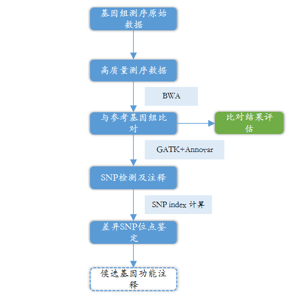 BSA(bulk segregant analysis)是近年来兴起的一种快速简单的性状定位方法,BSA性状定位针对目标性状,选择表型极端差异的亲本构建家系,对该家系目标性状表型极端的子代分别混合得到的两个样本池进行全基因组重测序,检测到的两池间DNA差异片段即为候选区域,可进一步定位到目标性状相关的基因或标记。利用该方法,可以快速的对单一性状进行精细定位,加速目标性状的功能基因组研究进程。
