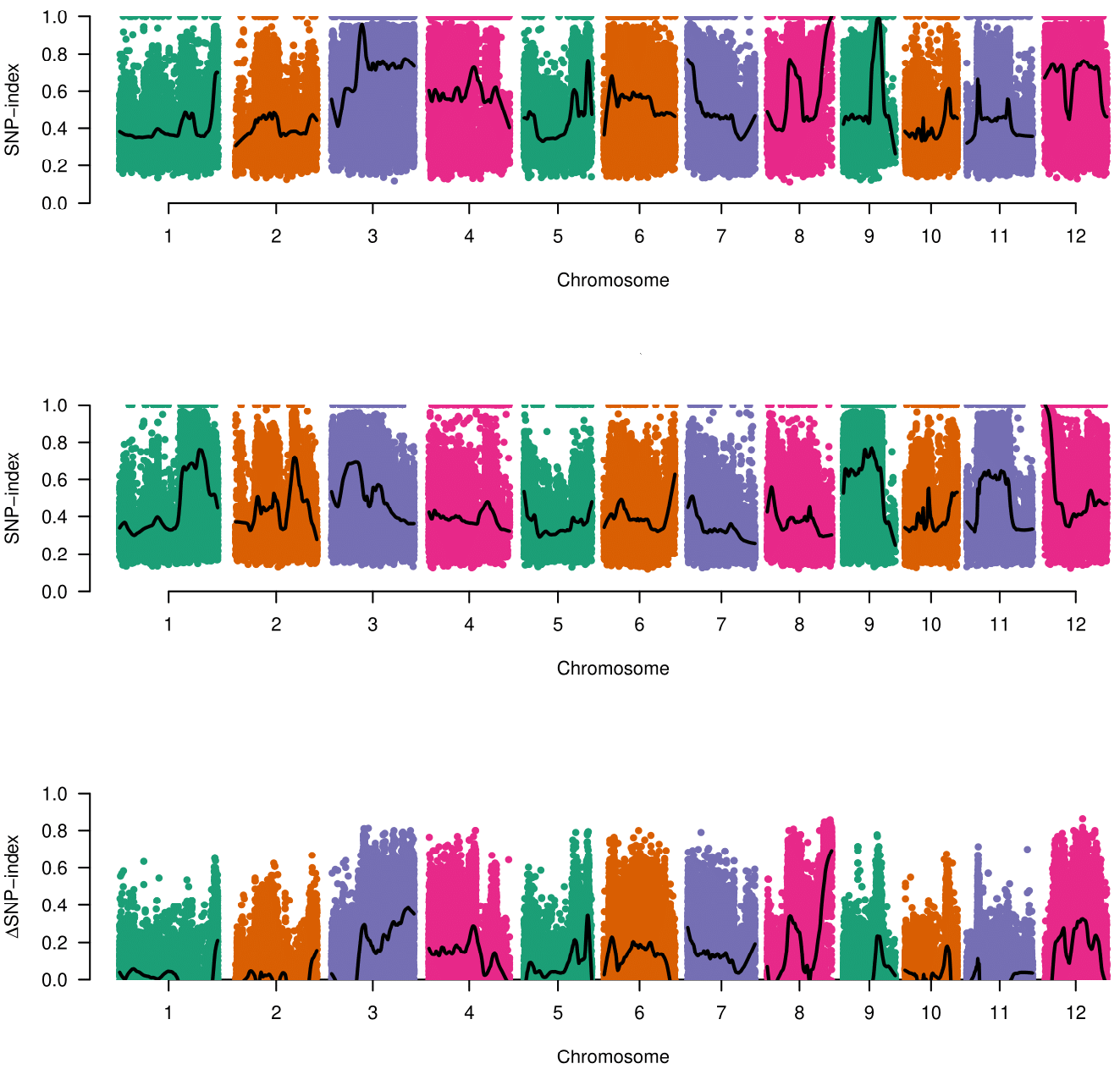 染色体 SNP index plot图